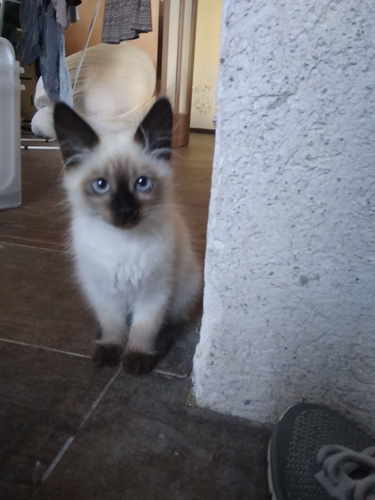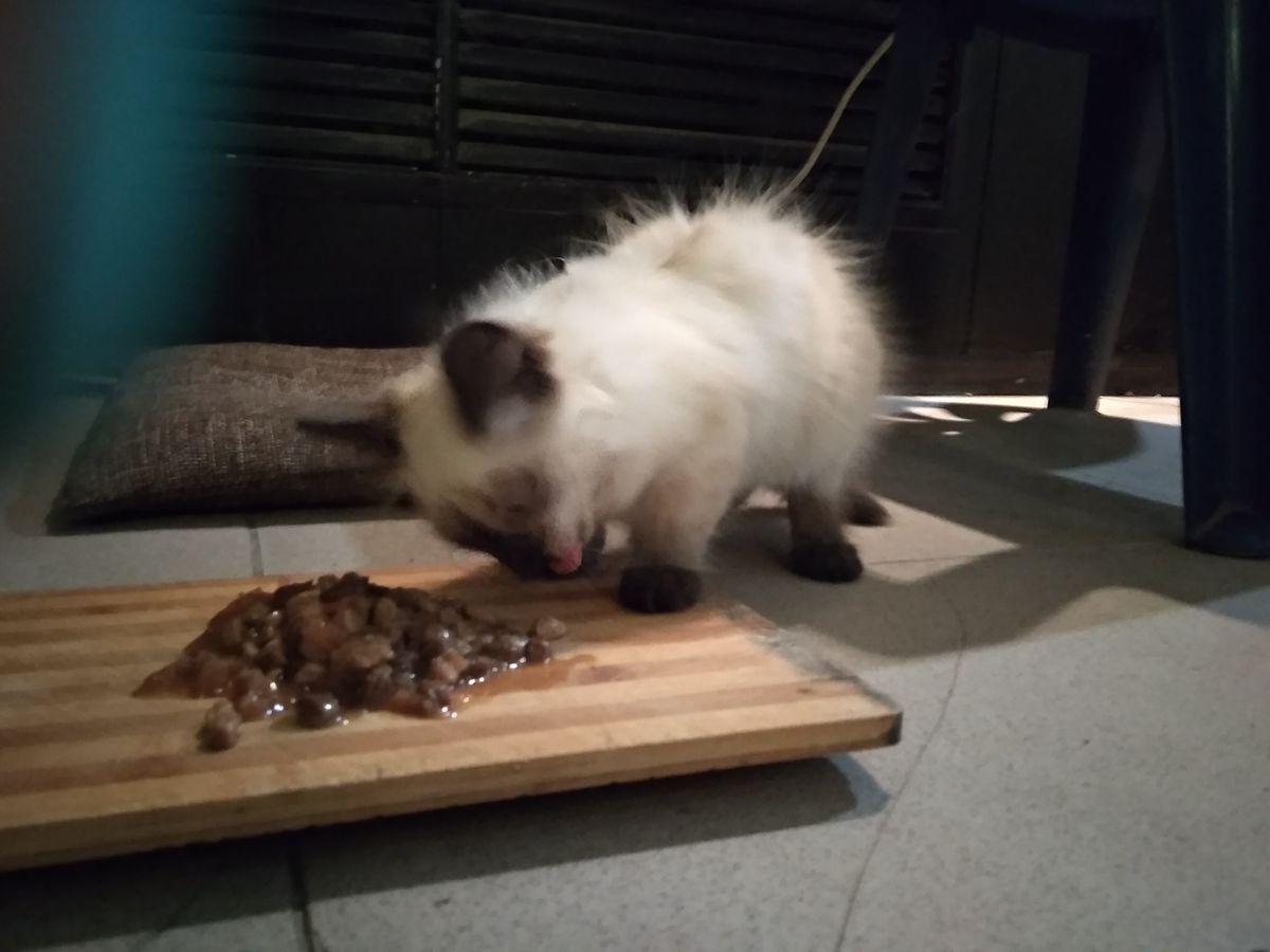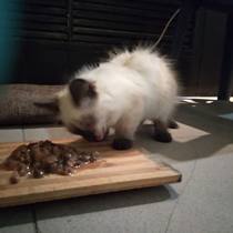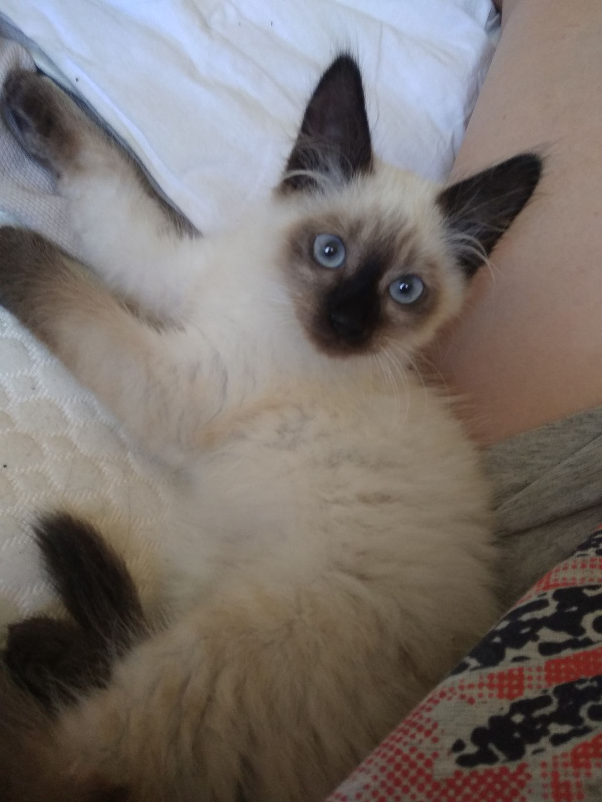 Очень нужна помощь малышу Элвису. Элвис — потому что красивый и громкий, это его и спасло. Около работы несколько часов орал кот на дереве. Дерево не очень высокое, ветвистое, кота на нем не видно и чего орет непонятно, слесть там несложно. После долгих кис-кис и уговоров между веток появилась испуганная мордочка вот такого крохи. Малыш просто боялся спускаться к машинам, собакам и людям. Потихоньку котенок начал доверять и спустился сам. Грязный, голодный, на еду набросился с рычанием, воду пил не мог остановиться. Что пережил на улице и кто его загнал на дерево страшно было представить. Но самое страшное впереди — это полчища блох на худеньком тельце. Я первый раз увидела настолько огромное количество блох на одном котенке. Сразу его обработали Инспектором, через четыре дня помыли Чистотелом и вручную снили не меньше сотни. Блохи ещё есть, поэтому нужно ещё раз обработать. Также малыша обязательно нужно хорошо проглистогонить. Элвис, кстати, оказался умницей и с первого дня стал ходить в лоток. Ещё у него сломан хвост, но травма скорее всего старая, потому что он его не беспокоит и хвостом управляет. Но всё-таки врачу стоит показать.