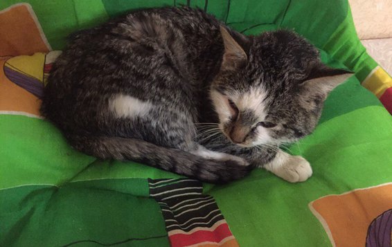 Этого кота я забрала с одной из передержек нашего города, куратор которой отправил его на радугу заочно. Видимо, считая лечение бессмысленным... Я Не смогла пройти мимо этих зелёных глаз, молящих о помощи и говорящих о боли. Барсик совсем молодой котик (7-8 месяцев), безумно ласковый и очень красивый. Он отчаянно цепляется за жизнь и ему очень нужна ваша помощь!!!! Это Котик с иммунопаразитарным заболеванием, острым бактериально-воспалительным процессом по желудочно-кишечному тракту, большими гематомами на почке(от сильного удара). Выйдя из кабинета ветеринара я поняла, что начинается первый, самый сложный бой с очень сложной болезнью. Лечение длительное и кропотливое и дорогостоящее!!!! . 9 дней мы ездили в клинику на уколы плюс дополнительно приходилось колоть дома глюкозу с физраствором т. к. Барсик отказывался сам есть и пить. К тому времени когда я его забрала кот был сильно обезвожен. До сих пор приходится кормить хвостика из шприца. Из-за воспалительного процесса он сам есть не может(((( Но мы не отчаиваемся, и продолжаем жить! Если бы вы знали на сколько это благодарный кот и как стойко он вынес все процедуры. Честно, у меня уже опускаются руки но, глядя на его стремление выжить я стискиваю зубы, влезая в долги,и продолжаю лечение!