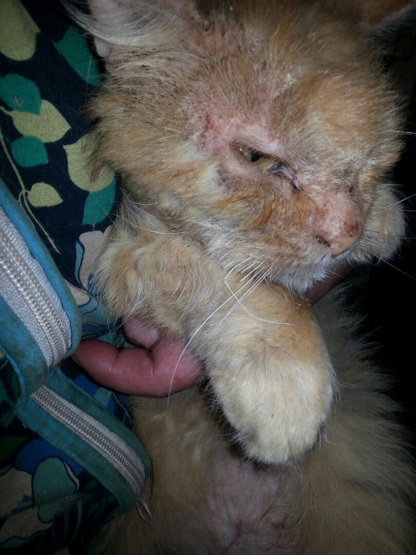 Кот Персик просит вашей помощи! У кота была чесотка и два пореза на животе и лапе. Чесотку вылечили стронгхолдом. Порезы начали зарастать. Когда пришло время кастрации - решили сделать анализы. В результате обнаружили проблемы с почками! Теперь требуется лечение и лечебный корм + повторная сдача анализов.