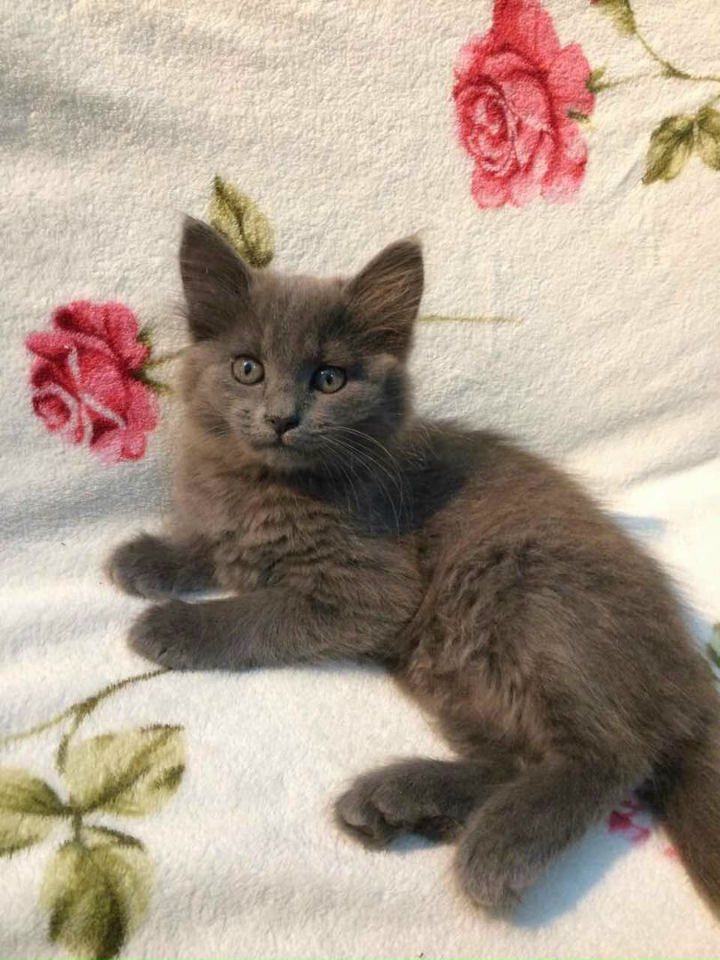 Отдам БЕСПЛАТНО, породистого котенка, девочка 2,5 месяца. Мама Русская голубая, папа британец. К лотку приучена, ласковая, кушает все.