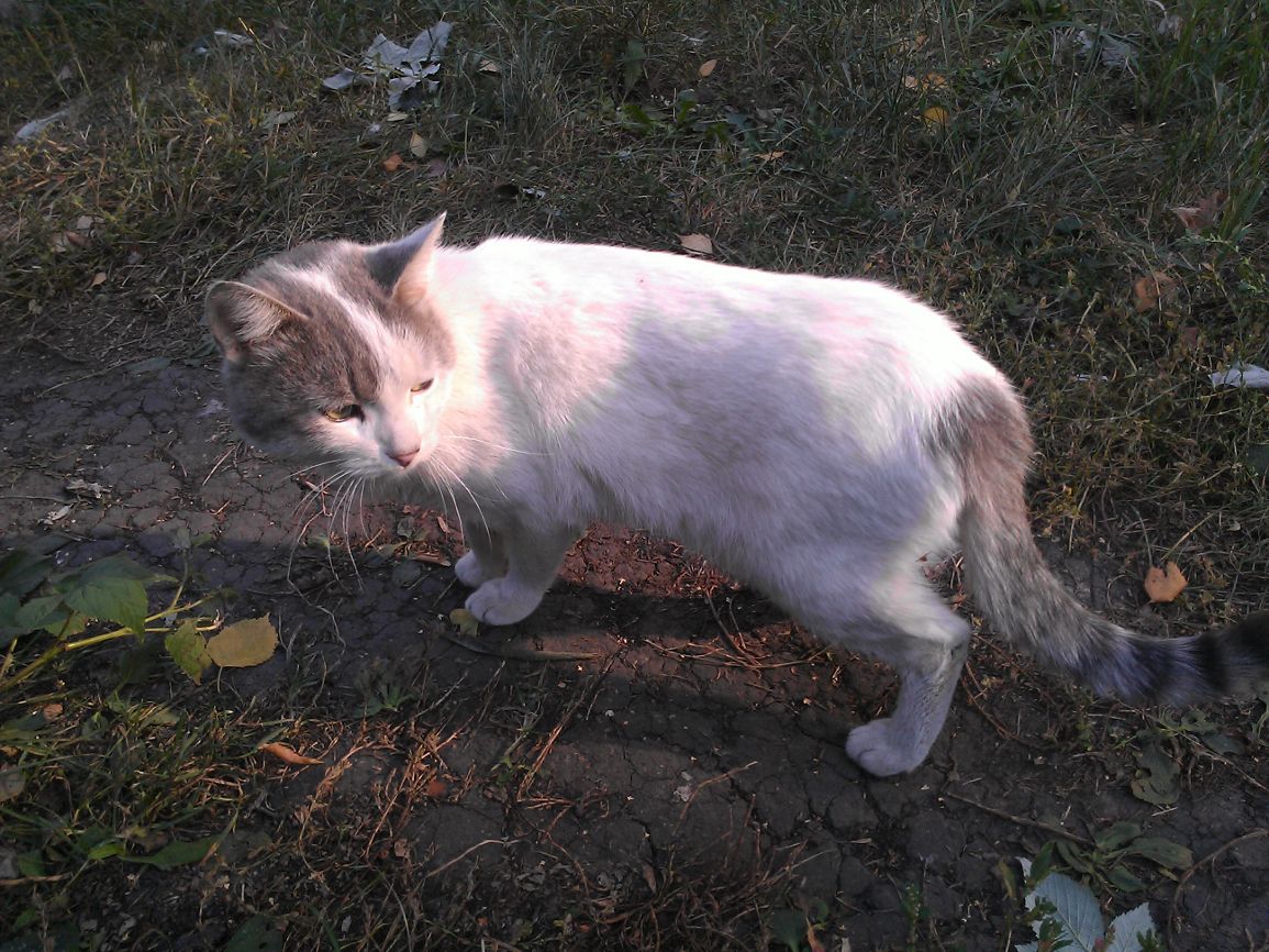 Кот кастрированный находится на улице. Очень растерян. Его ВСЕ гоняют. Он не прячется никуда. Не умеет добывать еду.