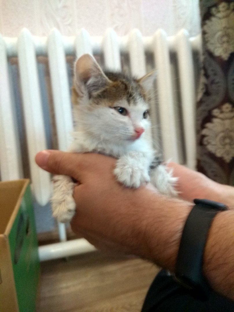 Сегодня подобрали возле дома котенка. Маленький, худенький.